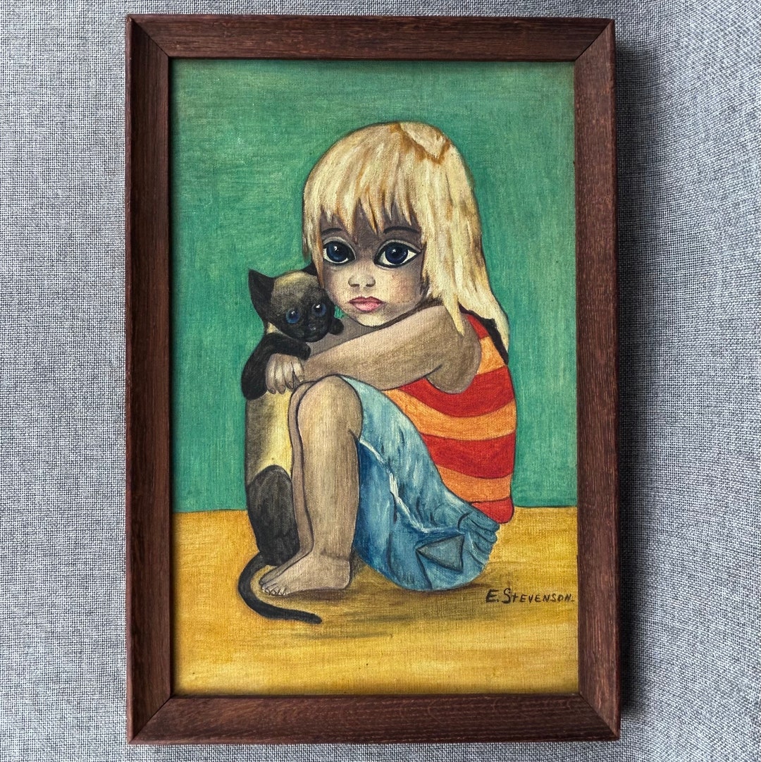 Vintage Mid Century Study of Margaret Keane Painting Etsy