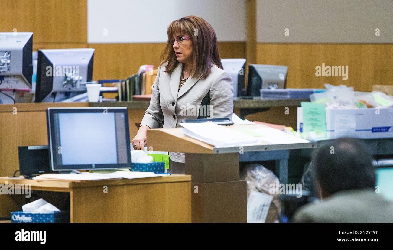 Jodi Arias looks back at the gallery during the sentencing phase of her