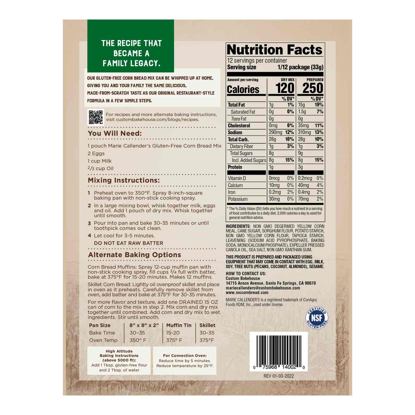 Marie Callenders Original Corn Bread Mix 32 oz Nutrition Information