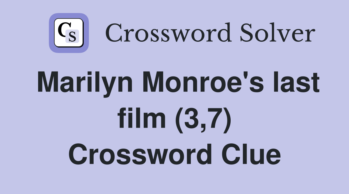 Marilyn Monroe #39 s last film (3 7) Crossword Clue Answers Crossword