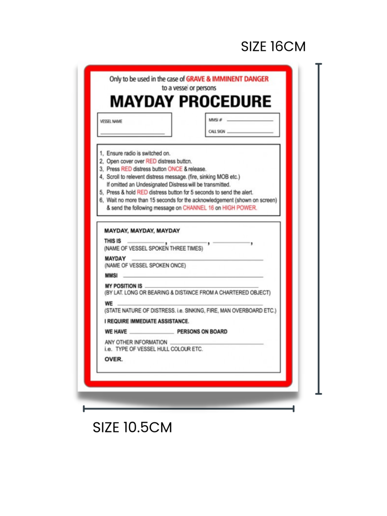 Yachtmail Marine Safety Sticker Mayday Procedure