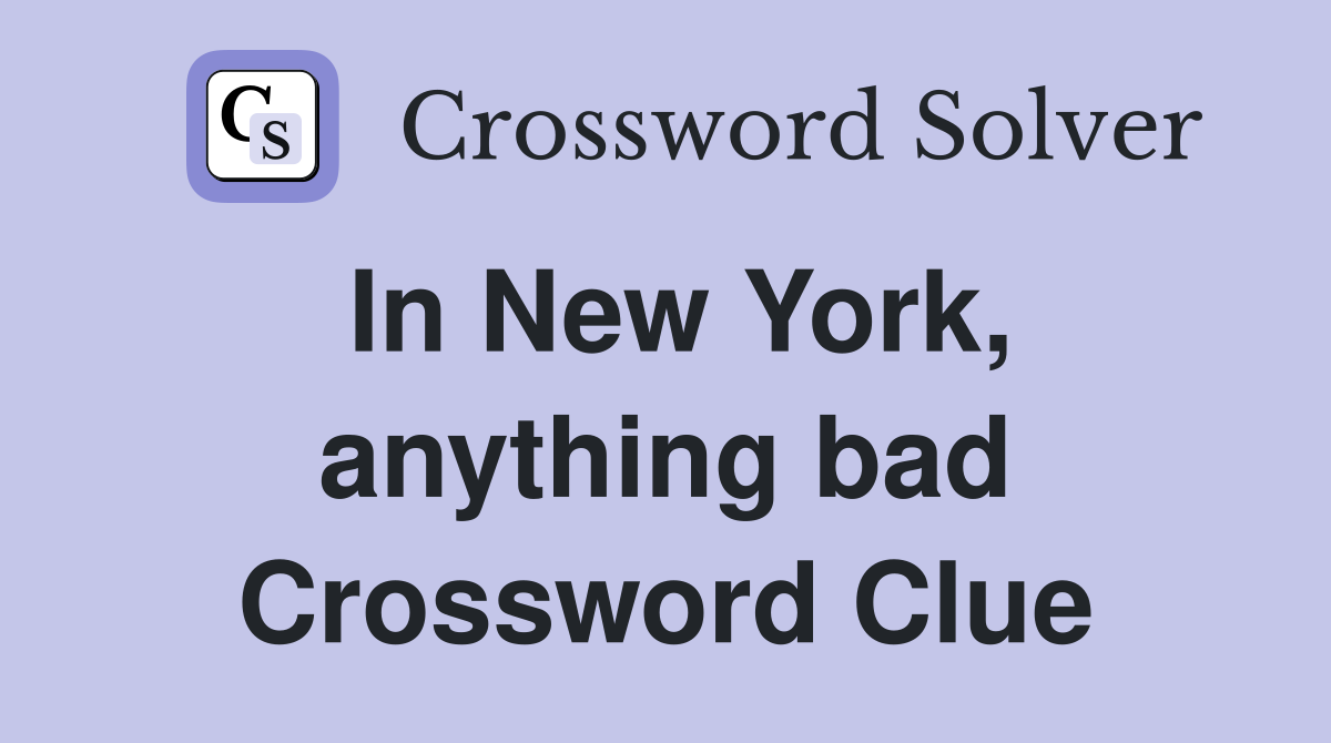 In New York anything bad Crossword Clue Answers Crossword Solver