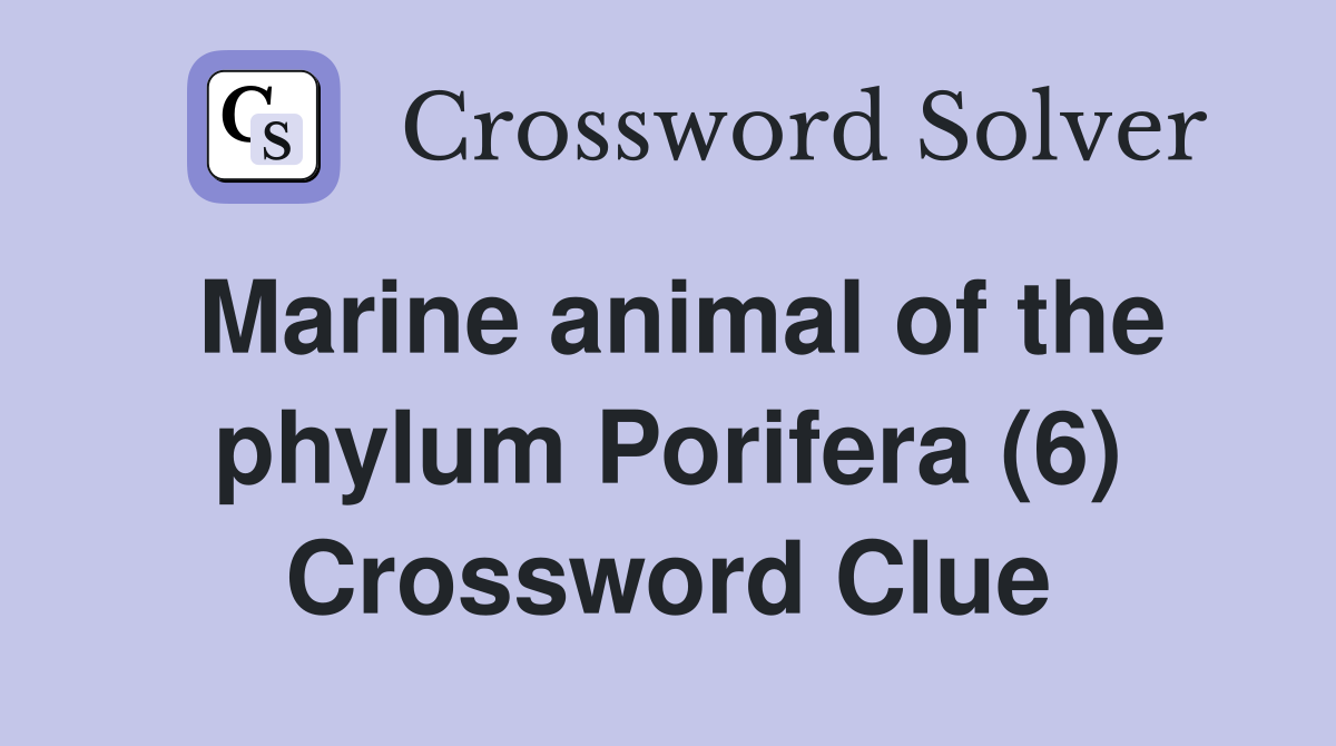 Marine animal of the phylum Porifera (6) Crossword Clue Answers