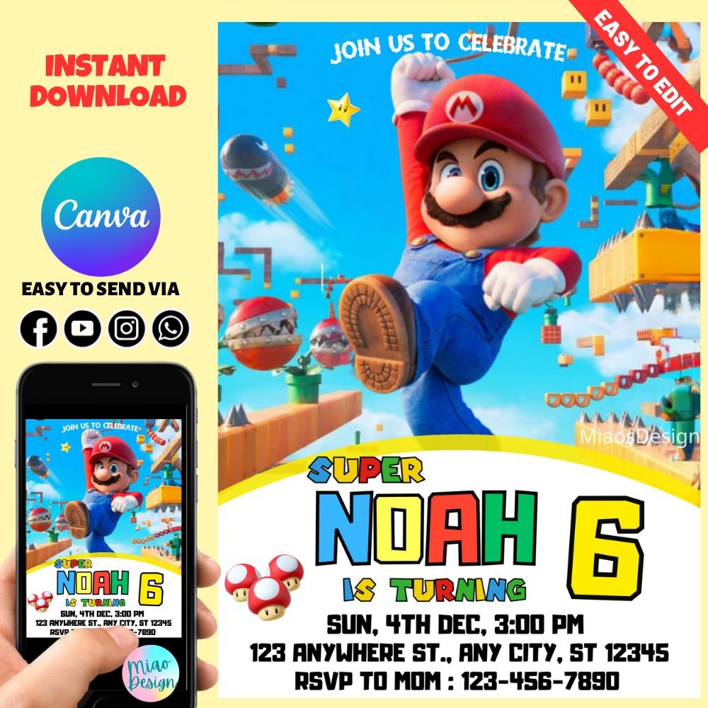 Super Mario Birthday Invitation Template Printable Birthday Etsy