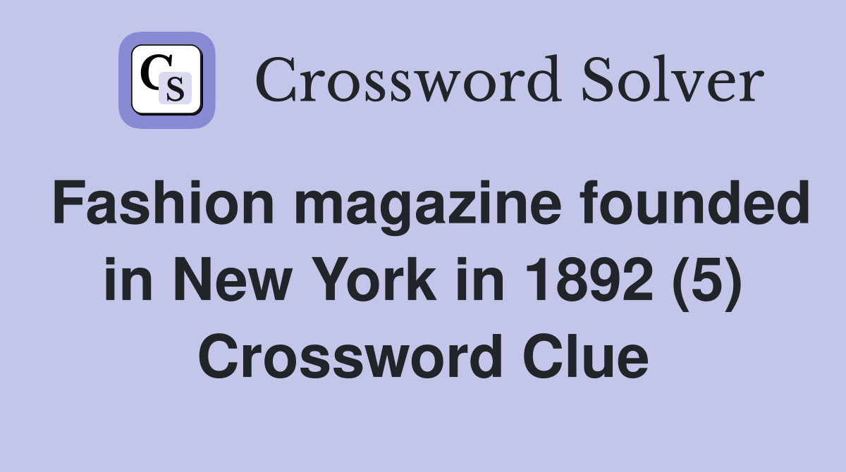 Fashion magazine founded in New York in 1892 (5) Crossword Clue