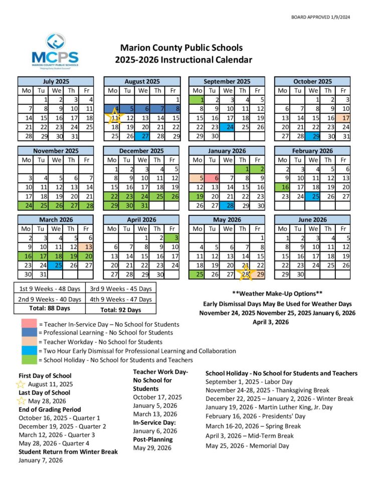 Marion County Public Schools Calendar Holidays 2025 2026 New School