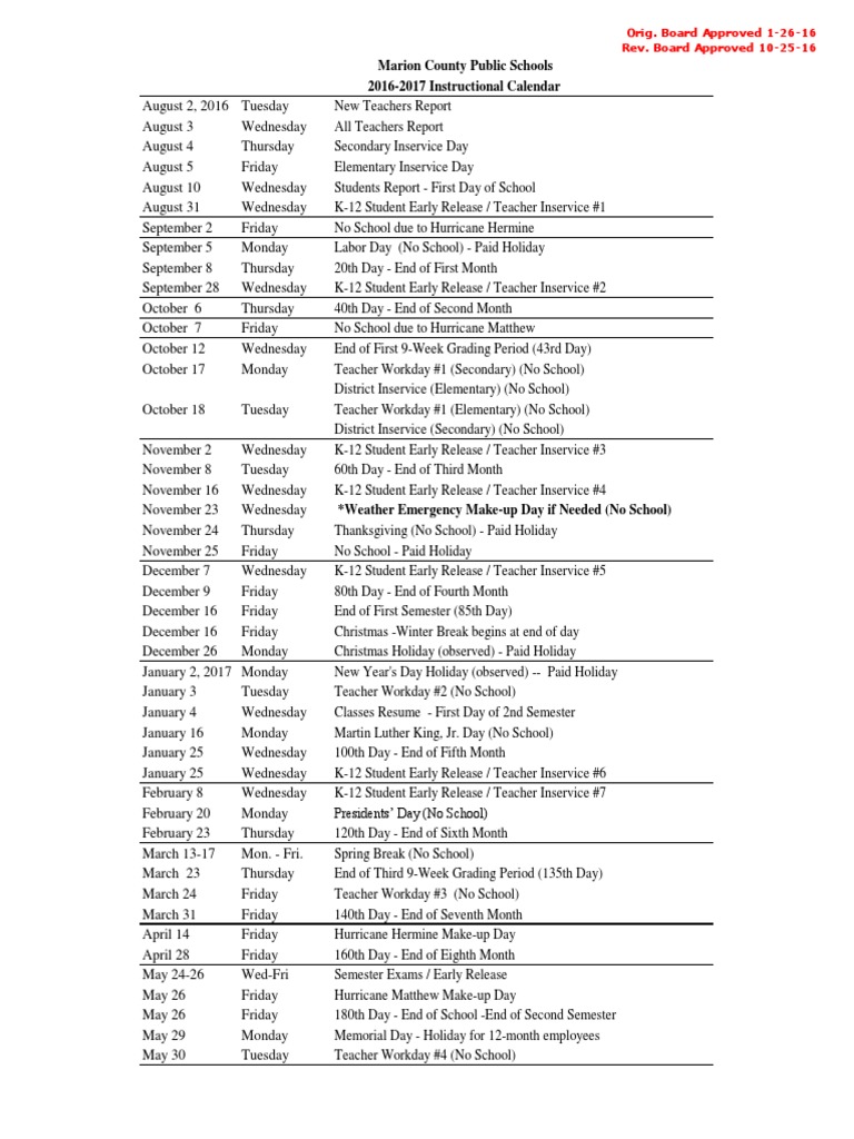 Marion County Public Schools 2016 2017 Instructional Calendar PDF
