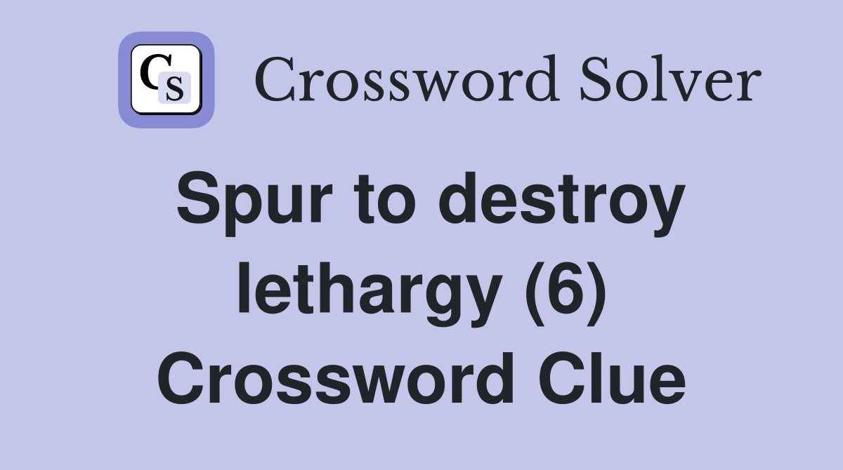 Spur to destroy lethargy (6) Crossword Clue Answers Crossword Solver