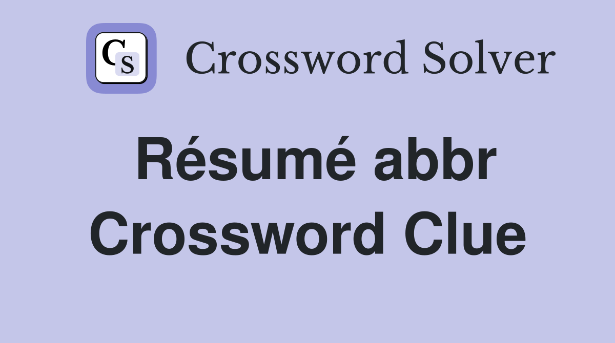 Résumé abbr Crossword Clue Answers Crossword Solver