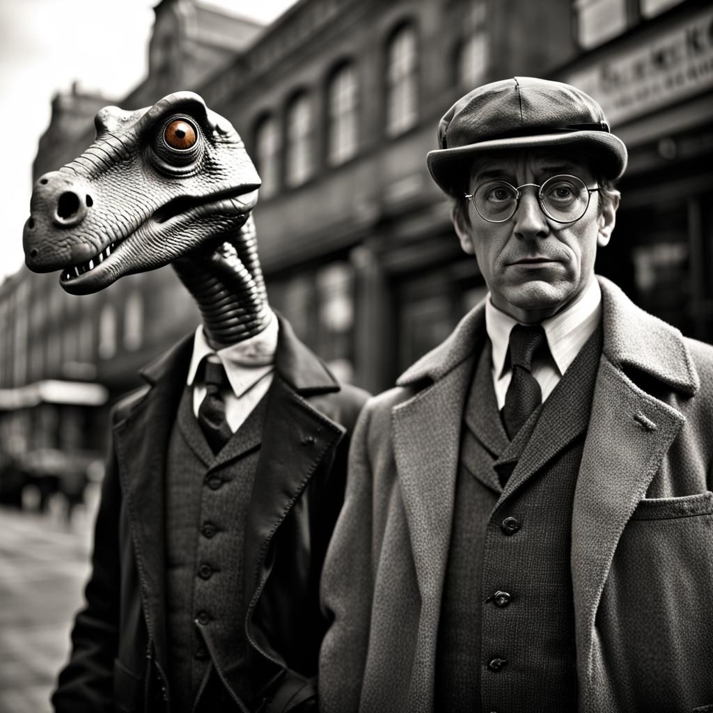 Sherlock Holmes and his Dinosaur pal AI Generated Artwork NightCafe
