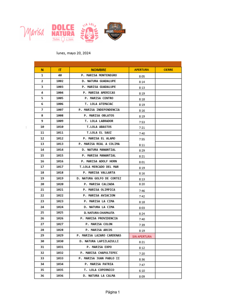 FORMATO MARISAS APERTURAS Y CIERRES PDF