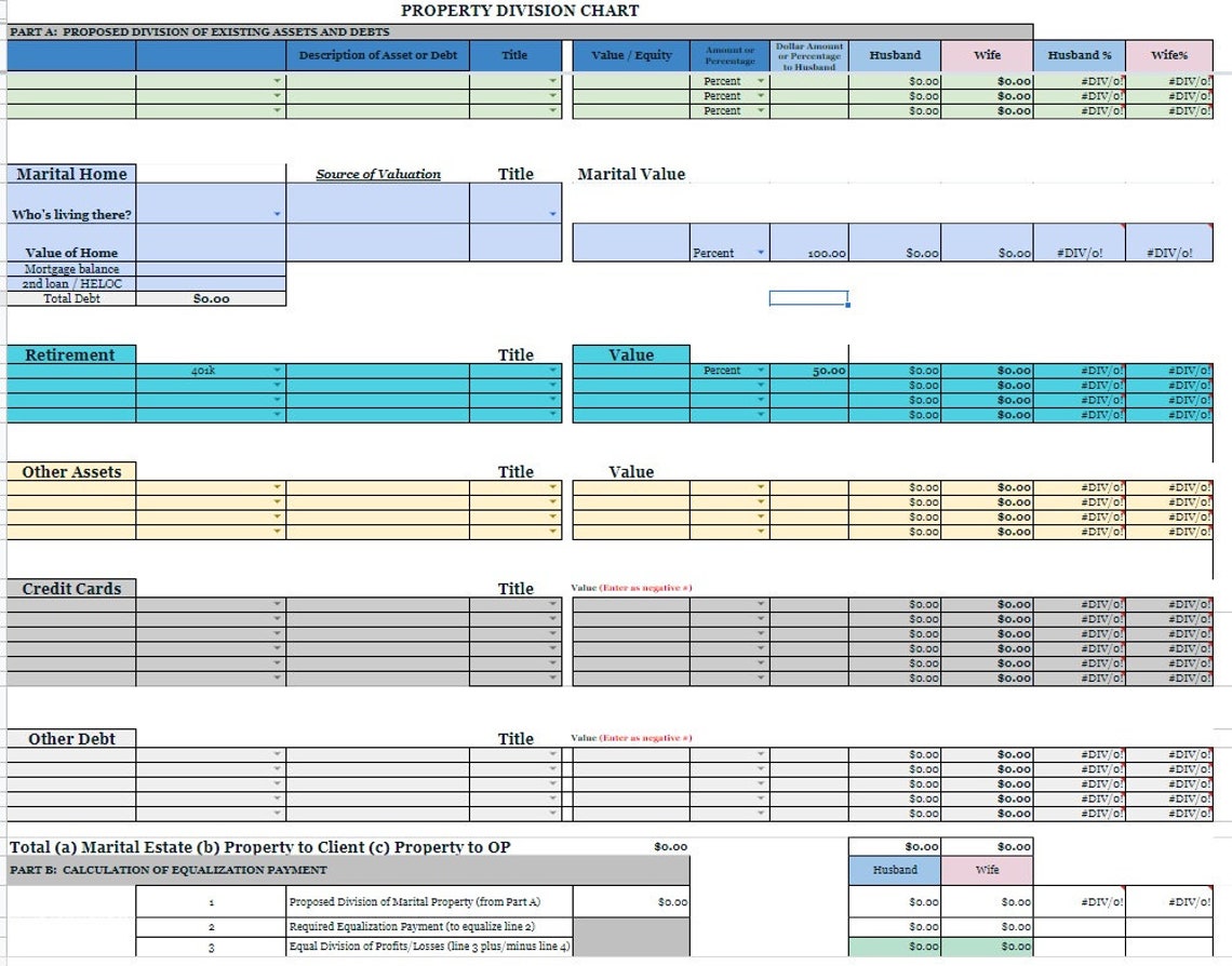 Equitable Distribution Worksheet Excel With Divorce US Legal Forms