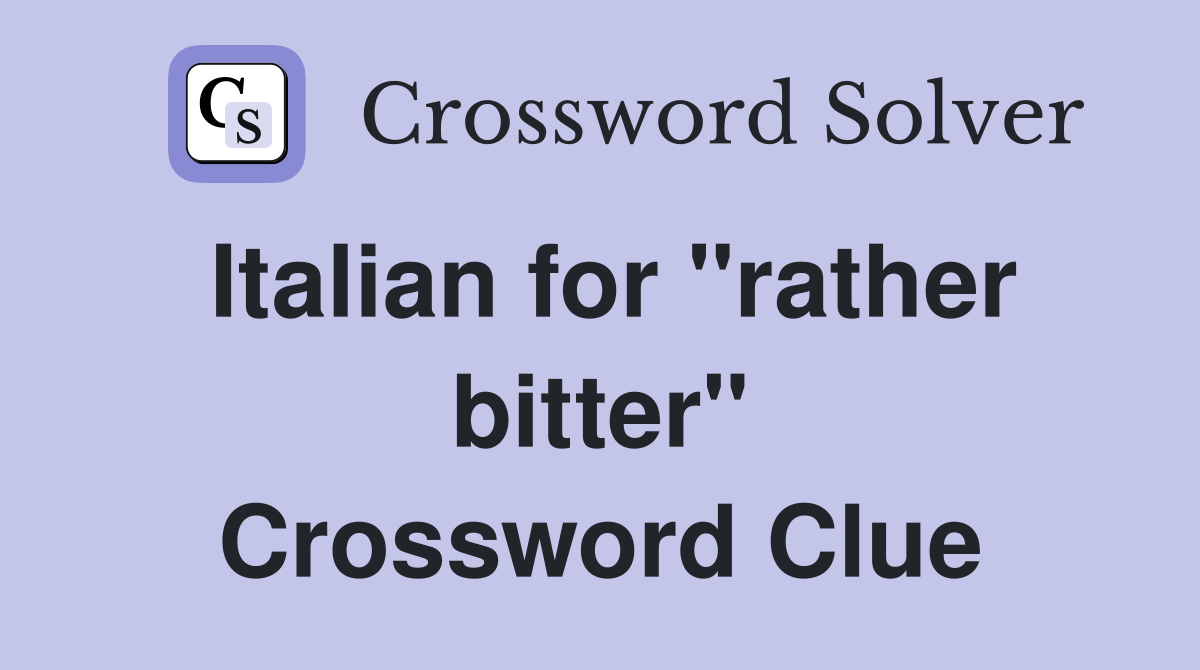 Italian for quot rather bitter quot Crossword Clue Answers Crossword Solver