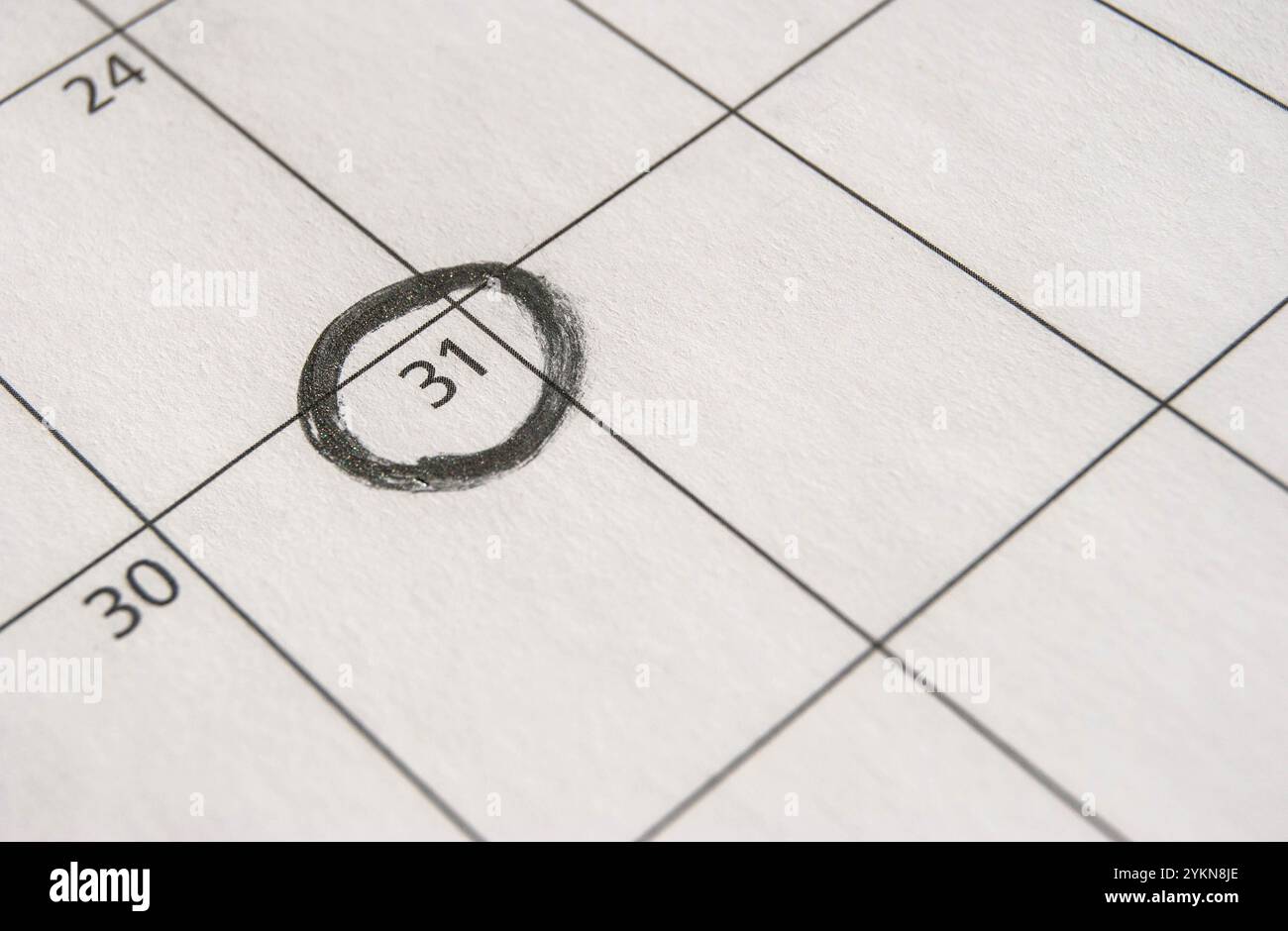 Close Up of Calendar Dates Marked with Red Circle Highlighting