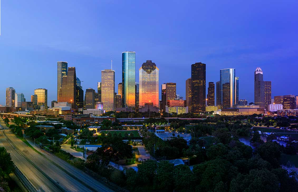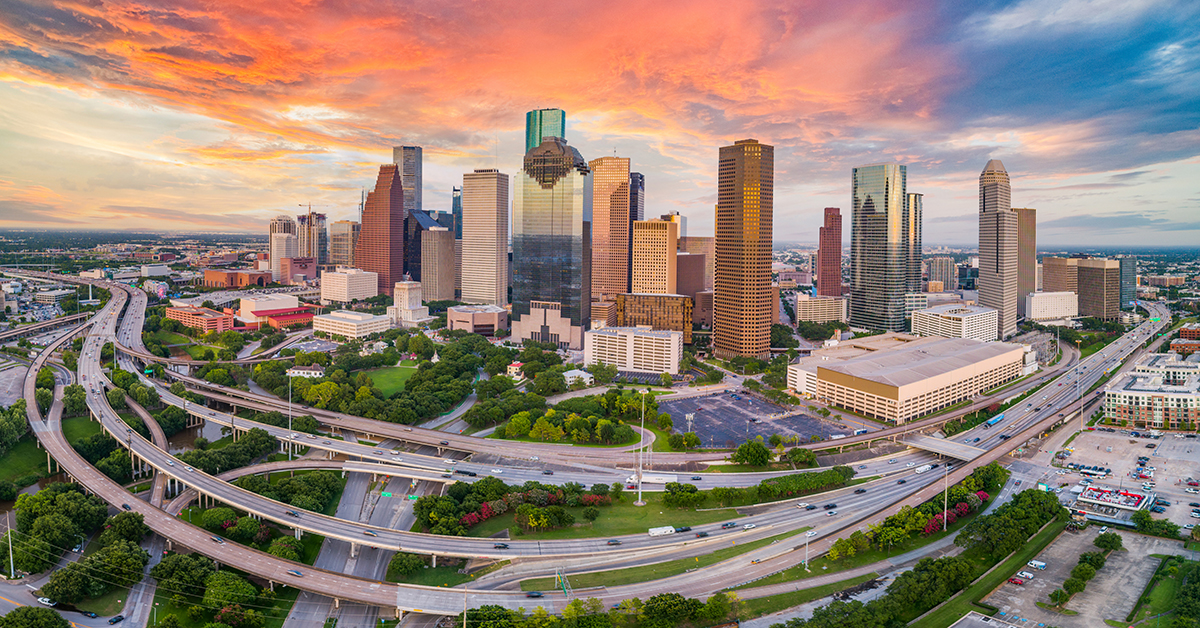 Panoramic View Over the City of Houston at Sunset HOUSTON UNITED