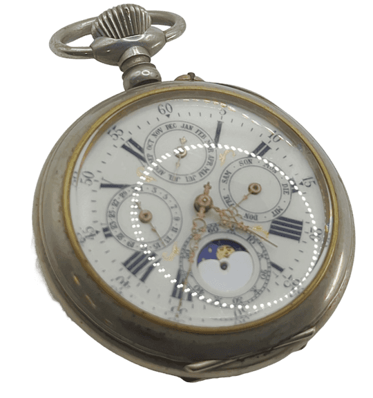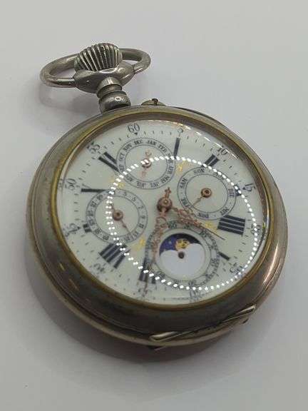 Large Pocket Watch W/Moon Phase Calender Dixon #39 s Auction at Crumpton