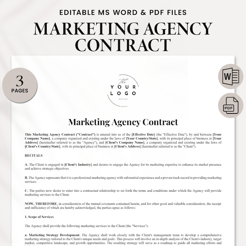 Marketing Agency Service Agreement Template Professional Contract for