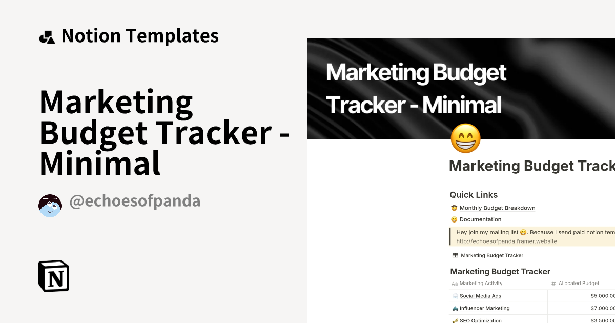 Marketing Budget Tracker Minimal Template by Echoes of Panda🐼