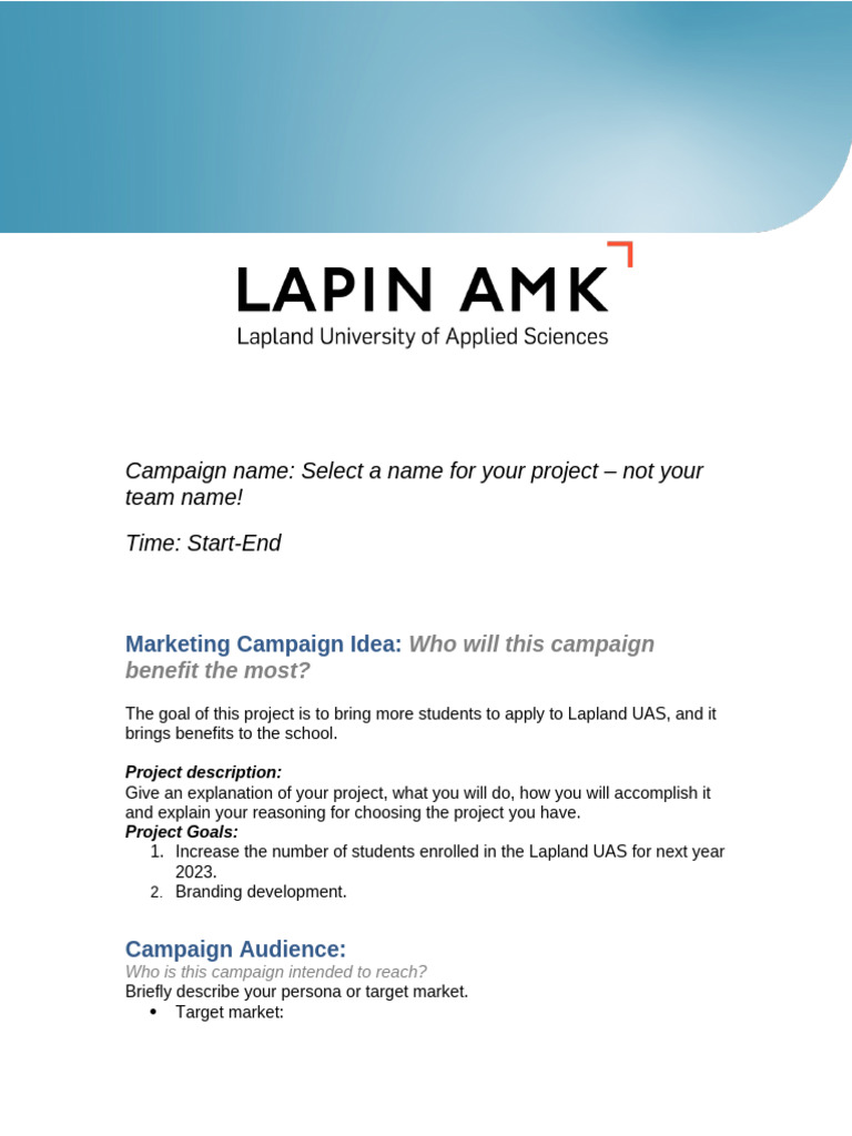 Marketing Campaign Project Plan Template PDF Business Social Science