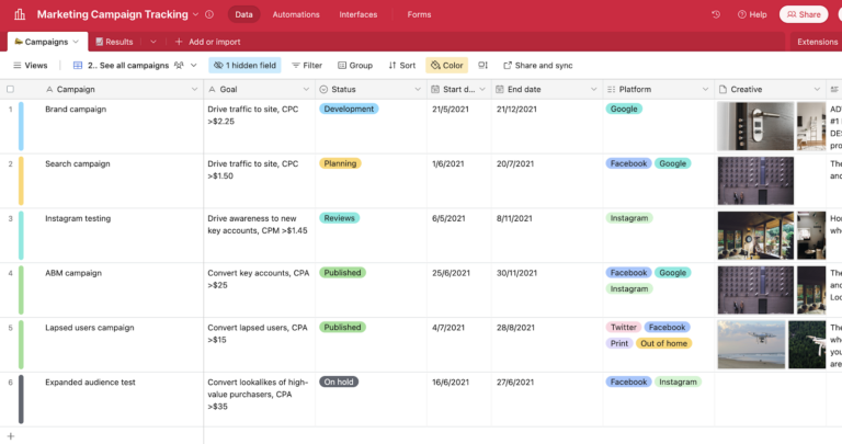 Template tour: Marketing campaign tracker Airtable