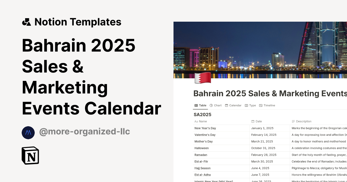 Bahrain 2025 Sales Marketing Events Calendar Template by More