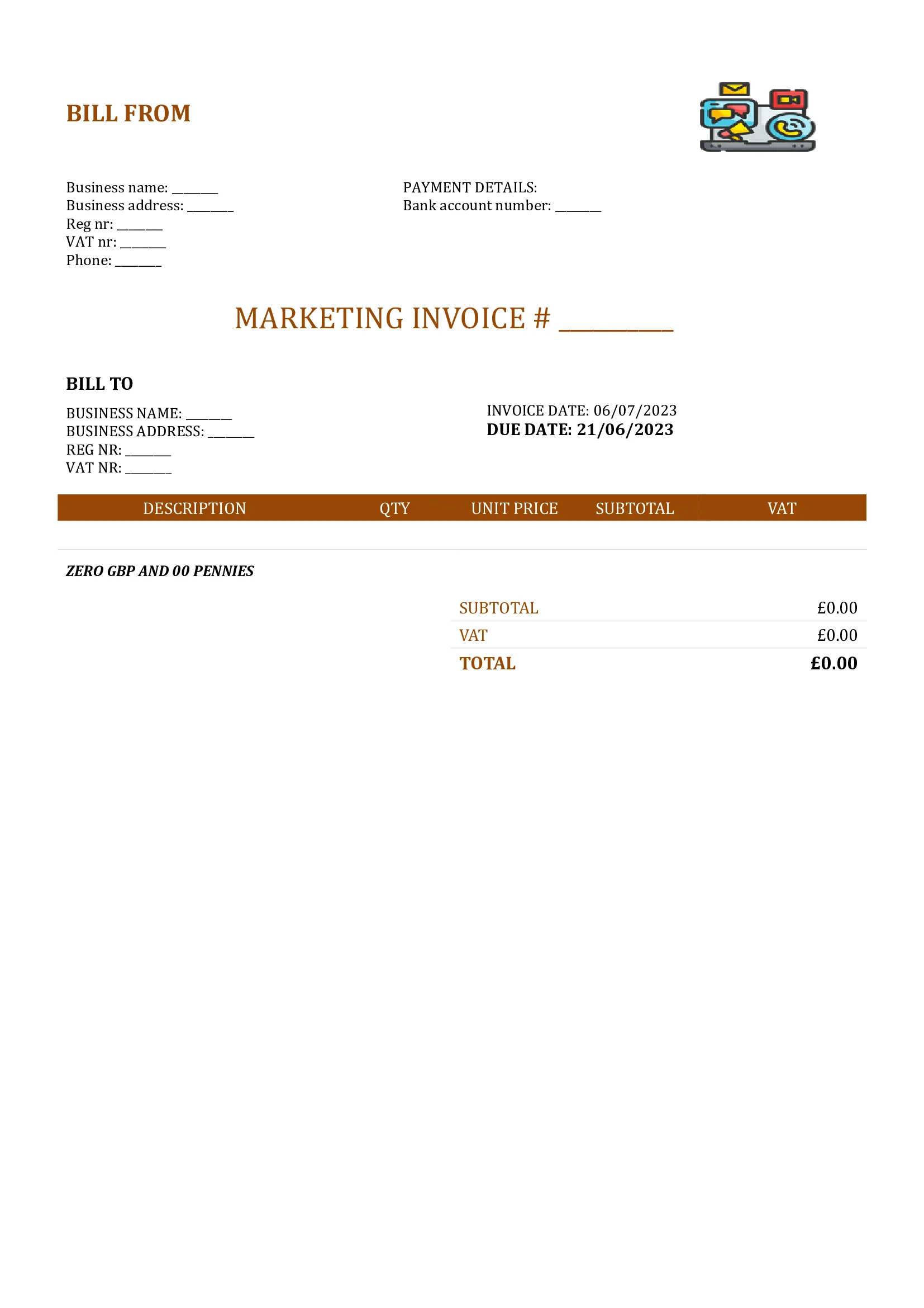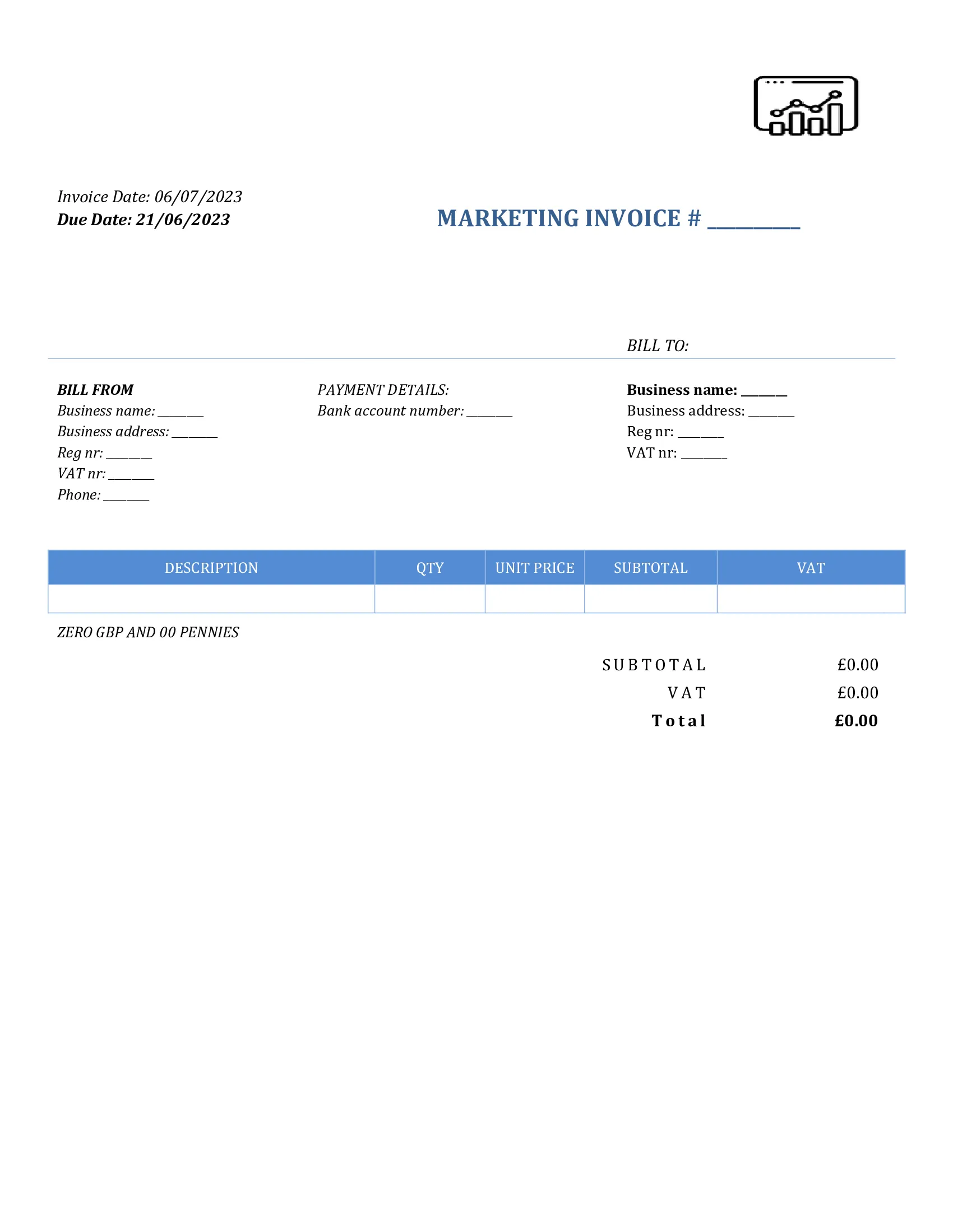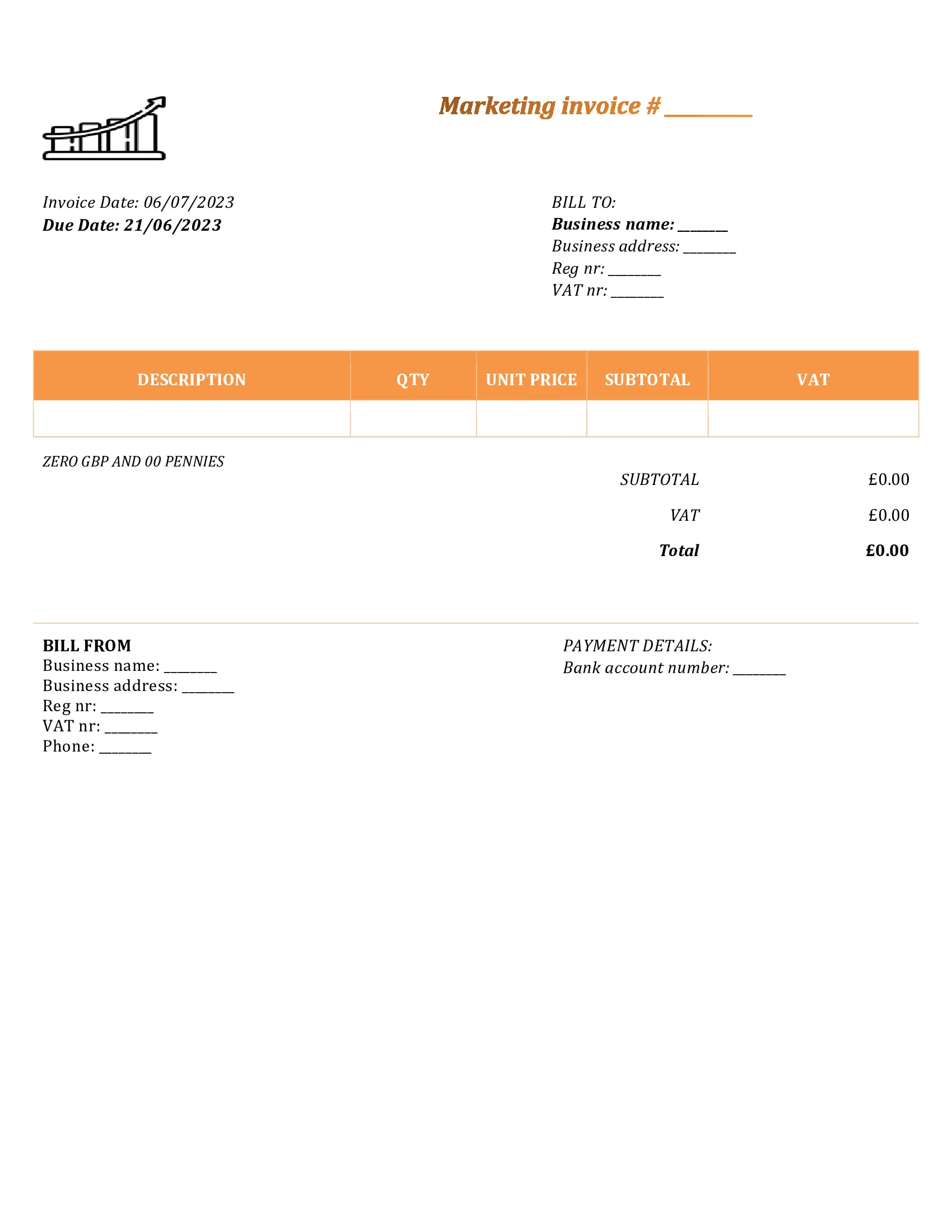 Formal Marketing Invoice Template UK Excel / Google sheets