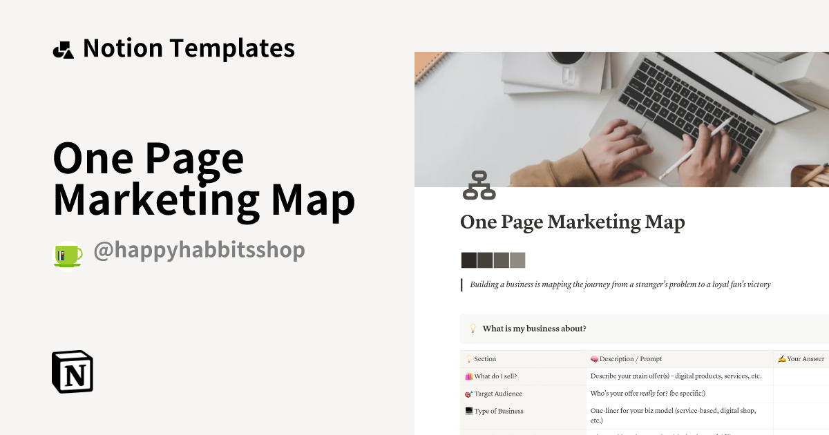 One Page Marketing Map Template Notion Marketplace