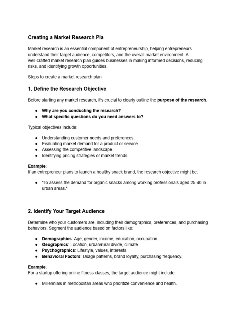 Market research plan PDF Marketing Research Target Audience