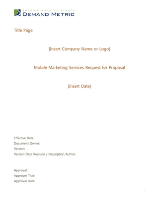 Mobile Marketing RFP Template A template for a Request for Proposal