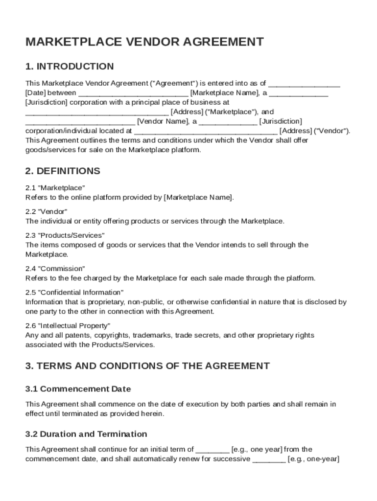 Marketplace Vendor Agreement Template: Fill out sign online DocHub