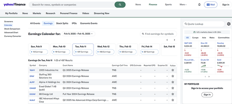 투자 아이디어 미국 기업 실적 발표 일정 확인 #2