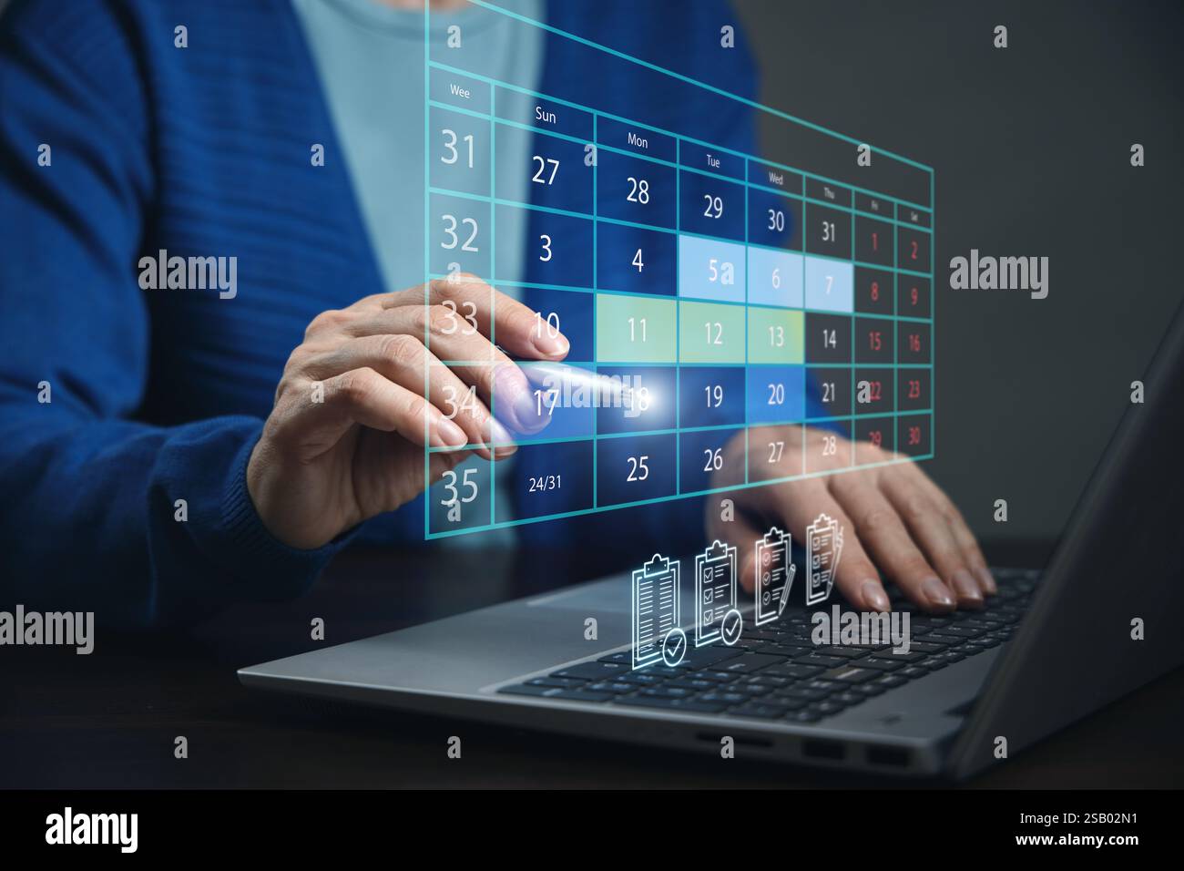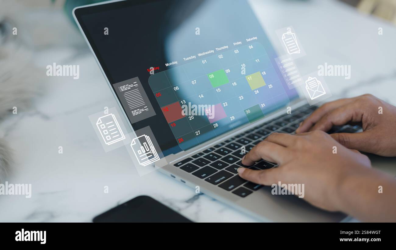 Calendar Monthly business planning Work schedule concept A person is