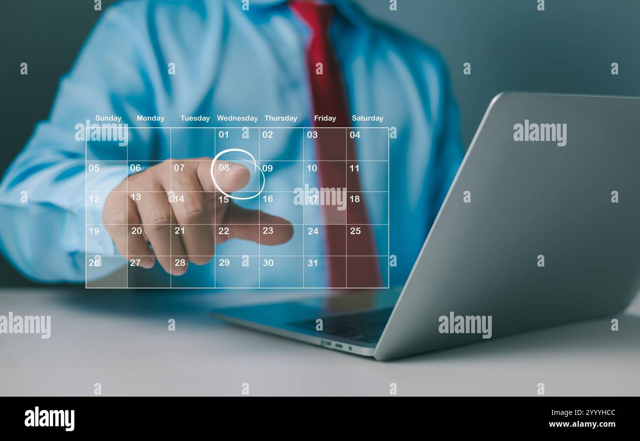 Appointment Scheduler Businessman Marking Dates on Virtual Calendar