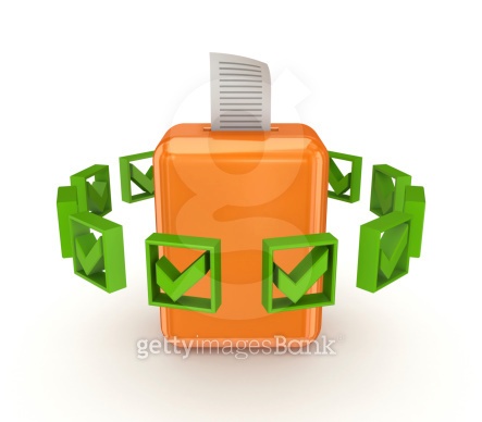 Green tick marks around Ballot box 이미지 (459586389) 게티이미지뱅크