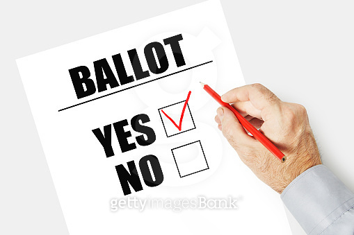 Man marks checkbox YES on the ballot 이미지 (638980310) 게티이미지뱅크