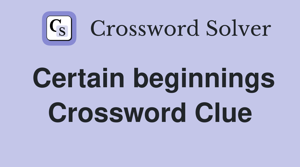 Certain beginnings Crossword Clue Answers Crossword Solver