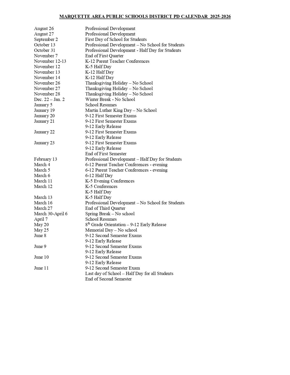 Here are some of the images for Marquette Area Public Schools Calendar that we found in our website database.