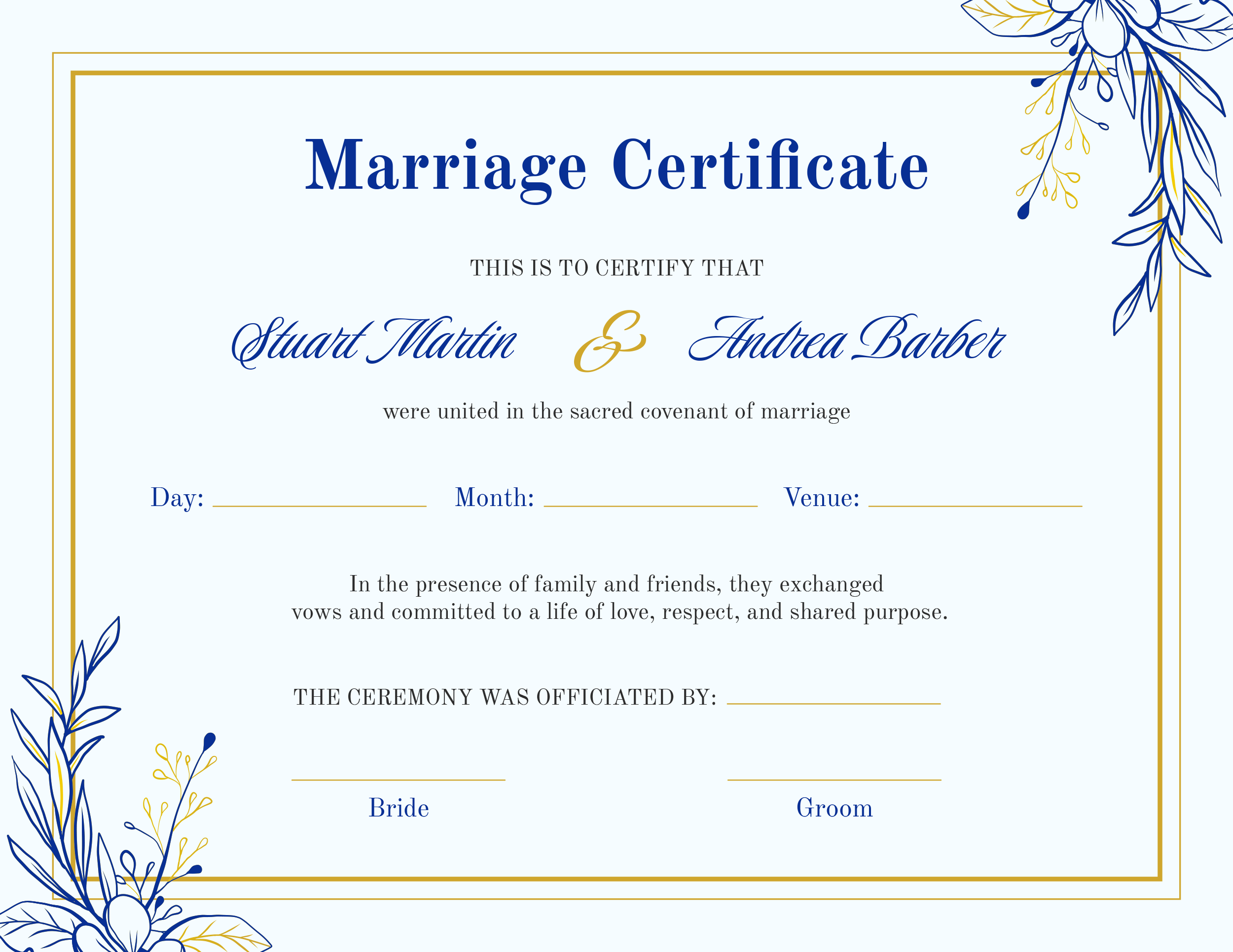 Indigo Marriage Certificate Template Highfile