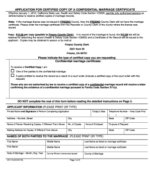 Request For Certified Copy Of Confidential Marriage License Co Fresno