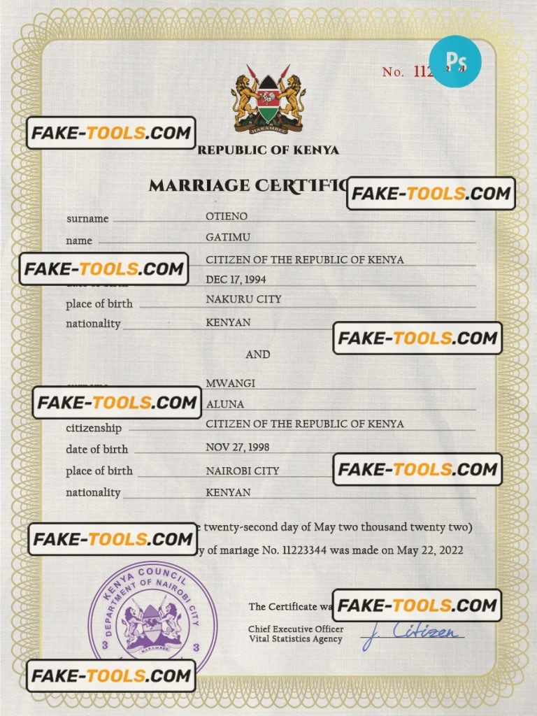 Kenya marriage certificate PSD template completely editable fake tools