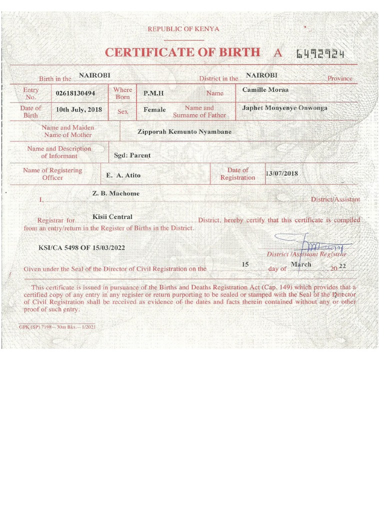 kenyan birth certificate PDF Legal Documents Civil Law (Common Law)