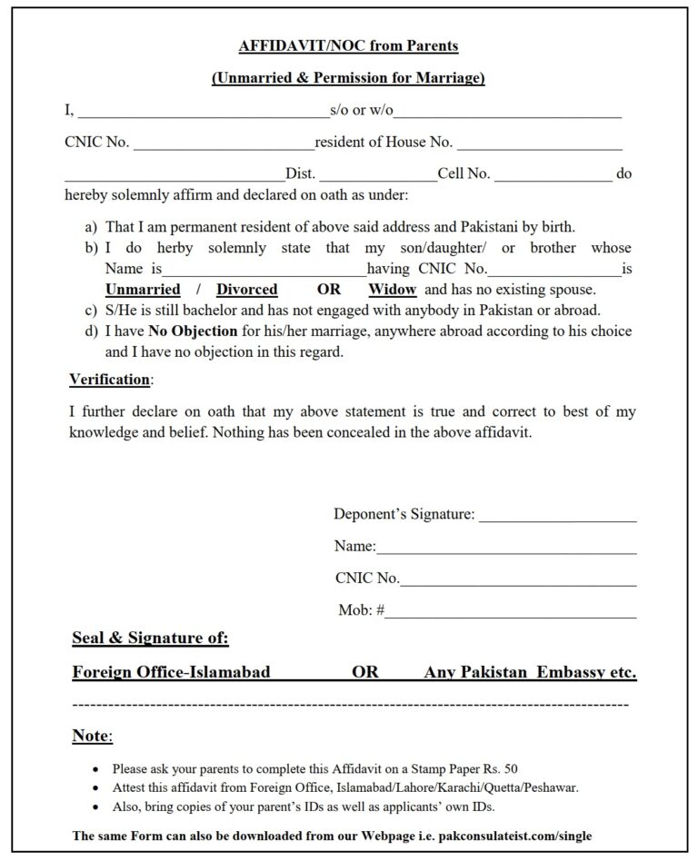 UnMarried Certificate Karachi Pakistan to Prove Single Status
