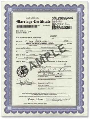 Marriage Certificate Reno Nv