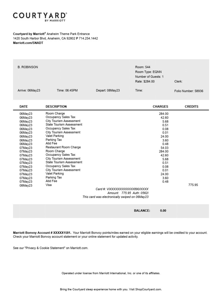 Marriott Guest Folio Receipt Template PDF Marriott International
