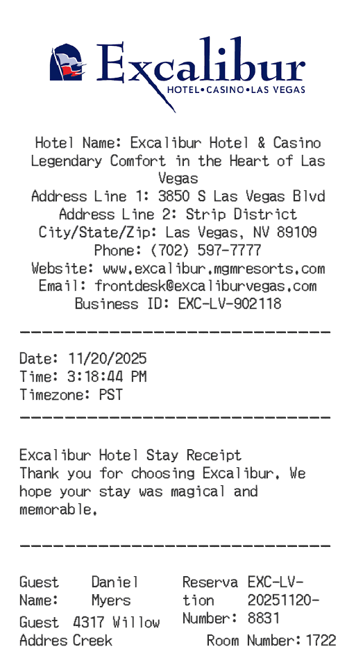 Hyatt Hotel Receipt Generator Template Editor
