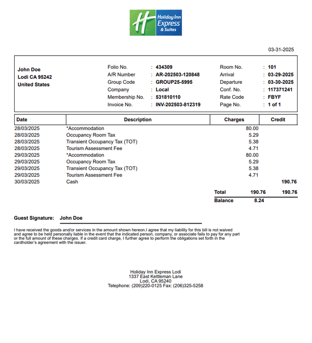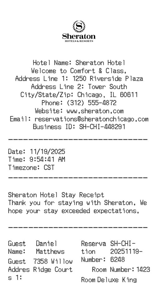 Marriott Hotel Receipt Generator Template Editor
