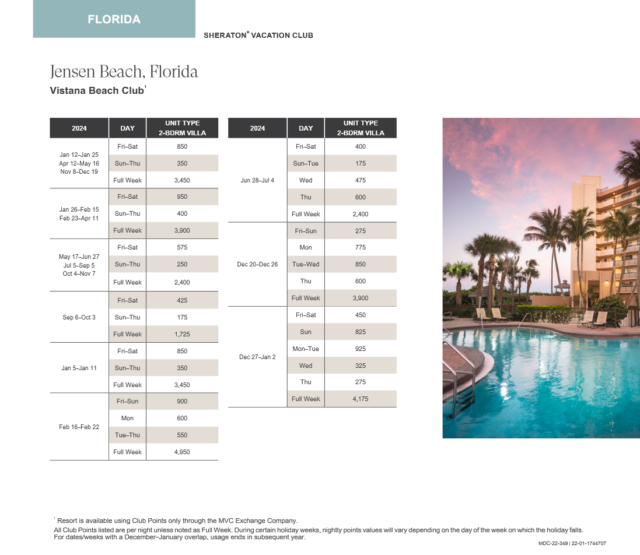 Vistana Beach Club Abound Points Chart 2024 2025 Advantage Vacation
