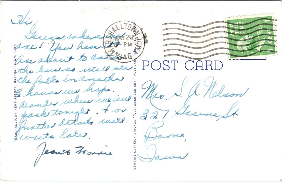 Postcard Marshalltown Iowa Marshall County Court House 1946