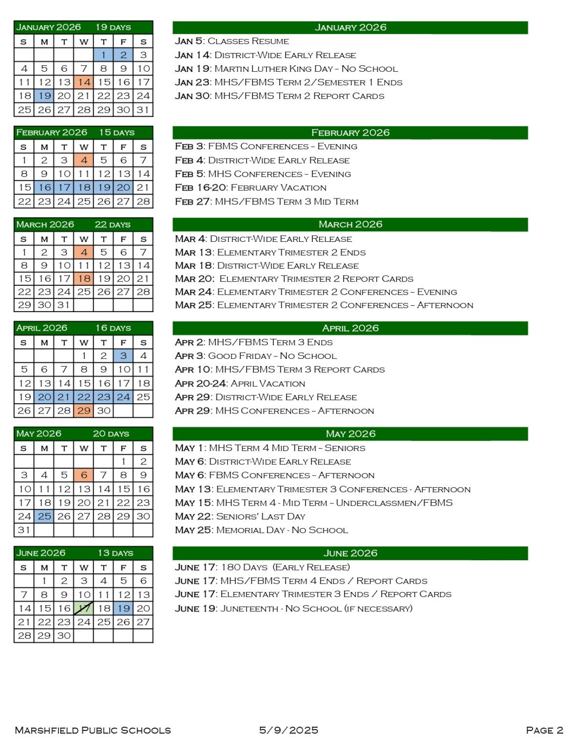Marshfield School District Calendar 2023 Schoolcalendars net