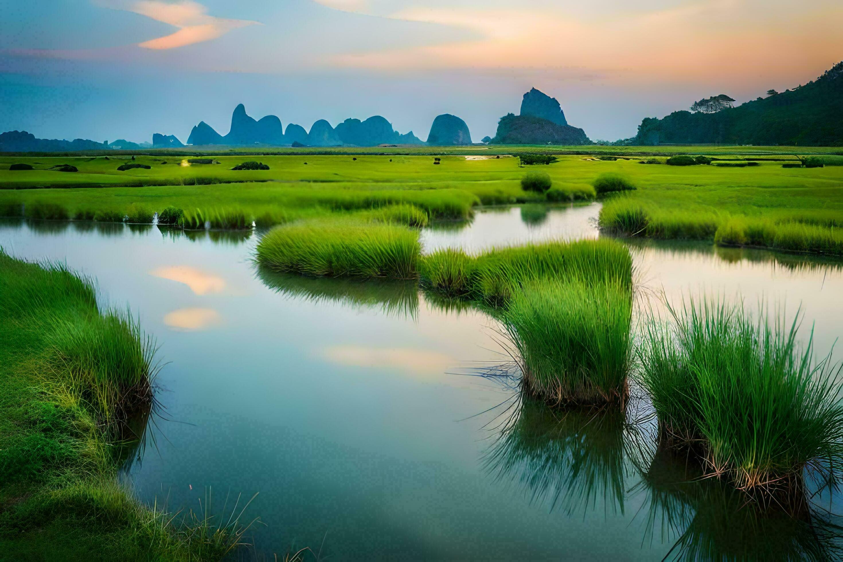 AI generated landscape with a oxbow lake among marshy banks 35871730
